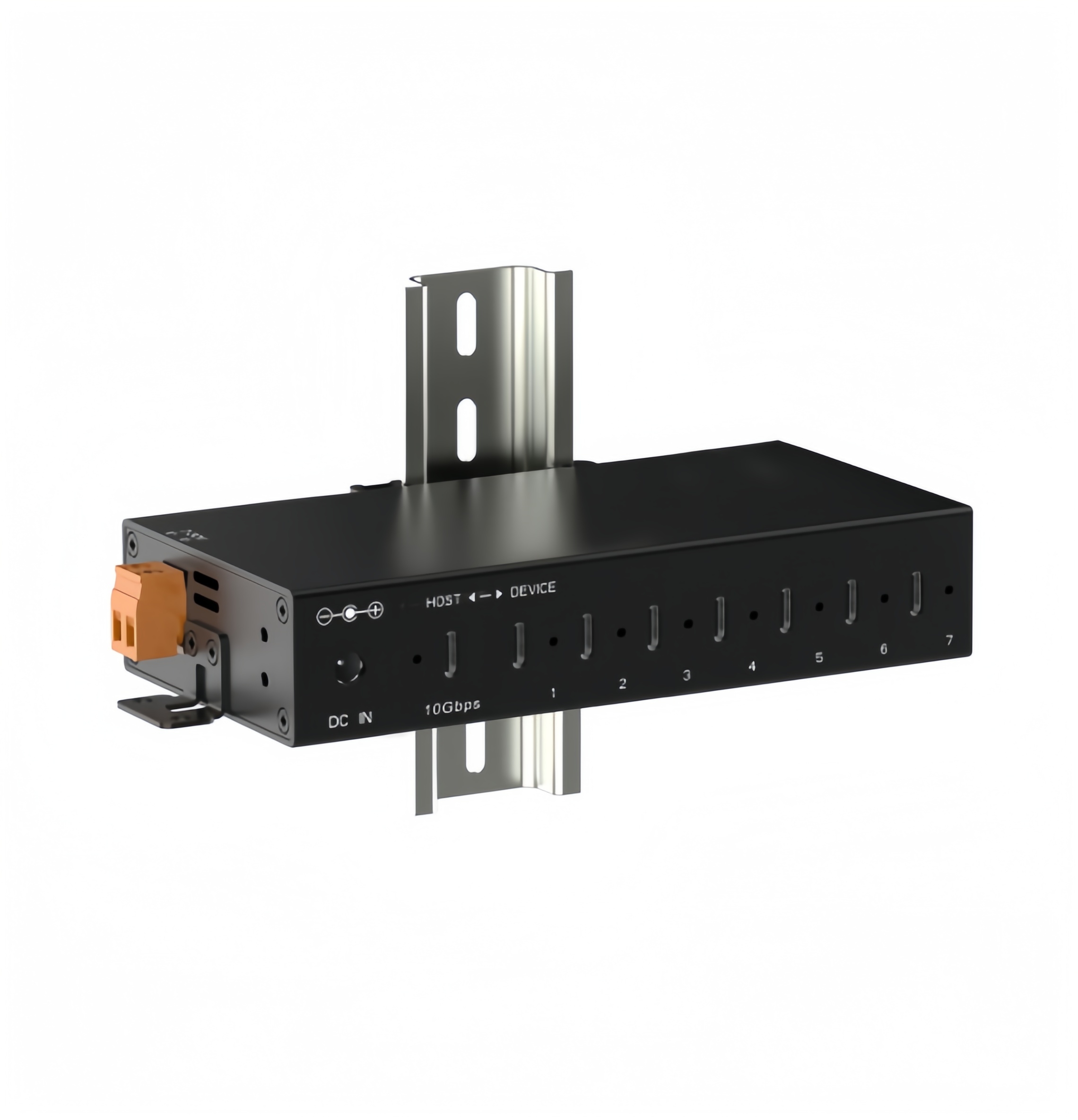 Industrial 7-Port USB 3.2 Gen 2 Type C Hub, with ESD and Surge protection, Wall/Desk/DIN Rail Mountable