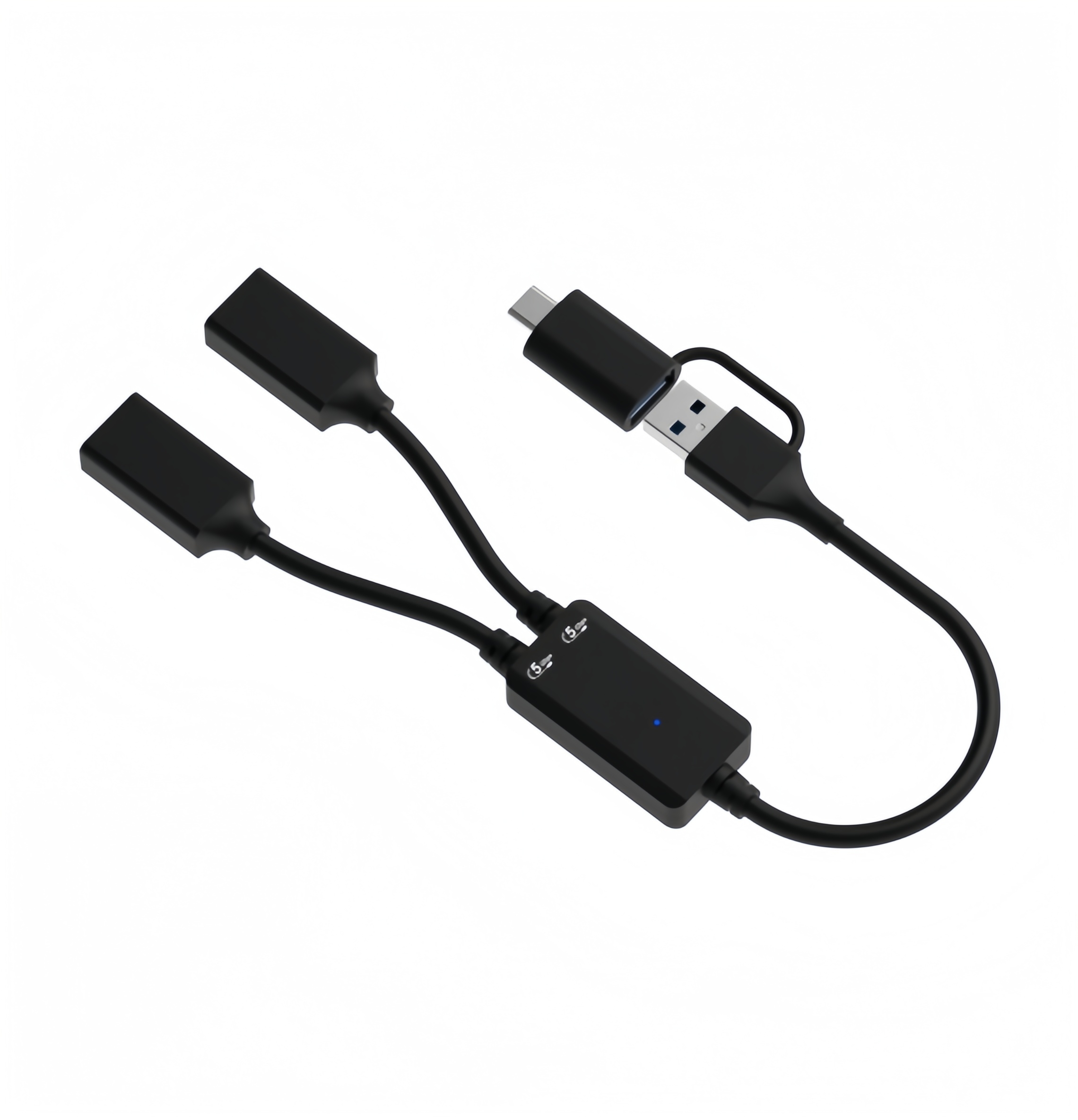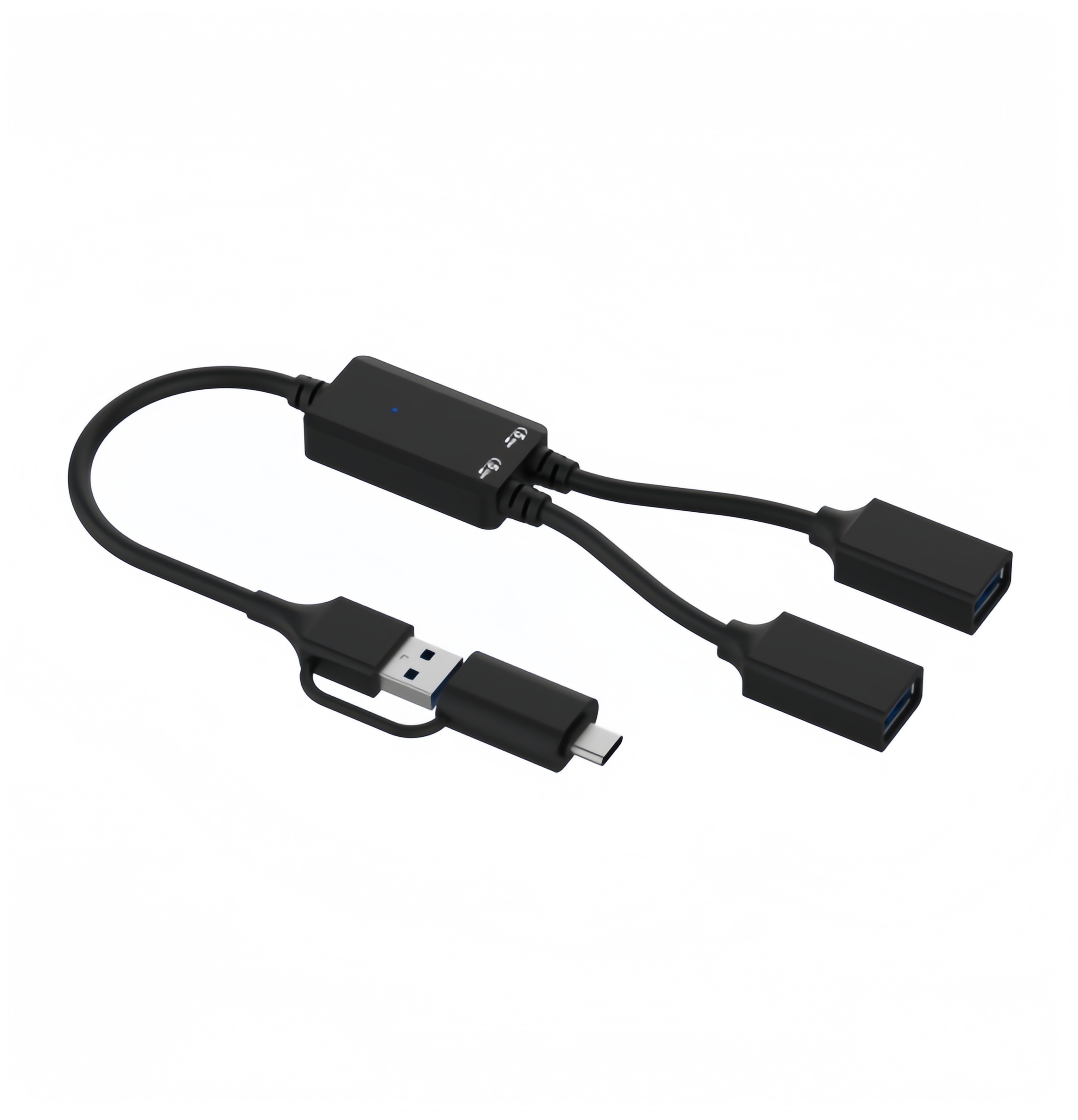 Flexible USB A/C to 2-Port USB3.0 Cable Hub, 5Gbps